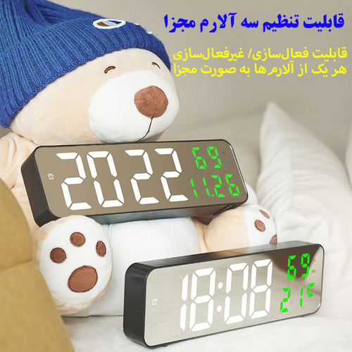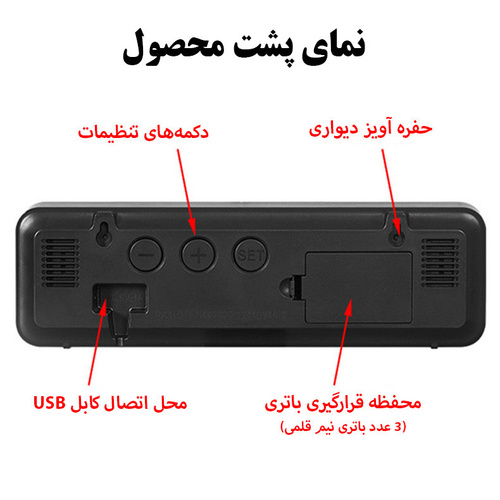 ساعت مدل DCX-671 یک ساعت دو منظوره برای استفاده رومیزی و دیواری است. صفحه نمایش این محصول از نوع HD LED بوده و با نمایش بزرگ اعداد، اطلاعات روی صفحه نمایش از فواصل دور و از هر زاویه ای کاملا قابل خواندن هستند (زاویه دید 180 درجه ای). این ساعت علاوه بر نمایش ساعت، قابلیت نمایش تاریخ، درجه هوا و میزان رطوبت هوا را توسط سنسورهای تعبیه شده در آن دارد. نمایش دمای هوا به دو صورت سلسیوس و فارنهایت قابل نمایش است. قابلیت تنظیم نور صفحه نمایش به صورت دستی و خودکار و قابلیت تنظیم 3 آلارم کاملا مجزا از دیگر امکانات این محصول جذاب هستند. این محصول قابلیت استفاده به صورت اتصال مستقیم به برق با کابل USB و یا استفاده با 3 عدد باتری نیم قلمی را دارد تا دیگر دغدغهای در مورد نوع منبع تغذیه نداشته باشید. همچنین دارای حالت دخیره انرژی است که در حالت باتری میتواند به مصرف کمتر باتری بسیار کمک کند. این ساعت با طراحی و ظاهر زیبای خود میتواند زیبایی بخش میزکار و یا دیوار خانه شما باشد.